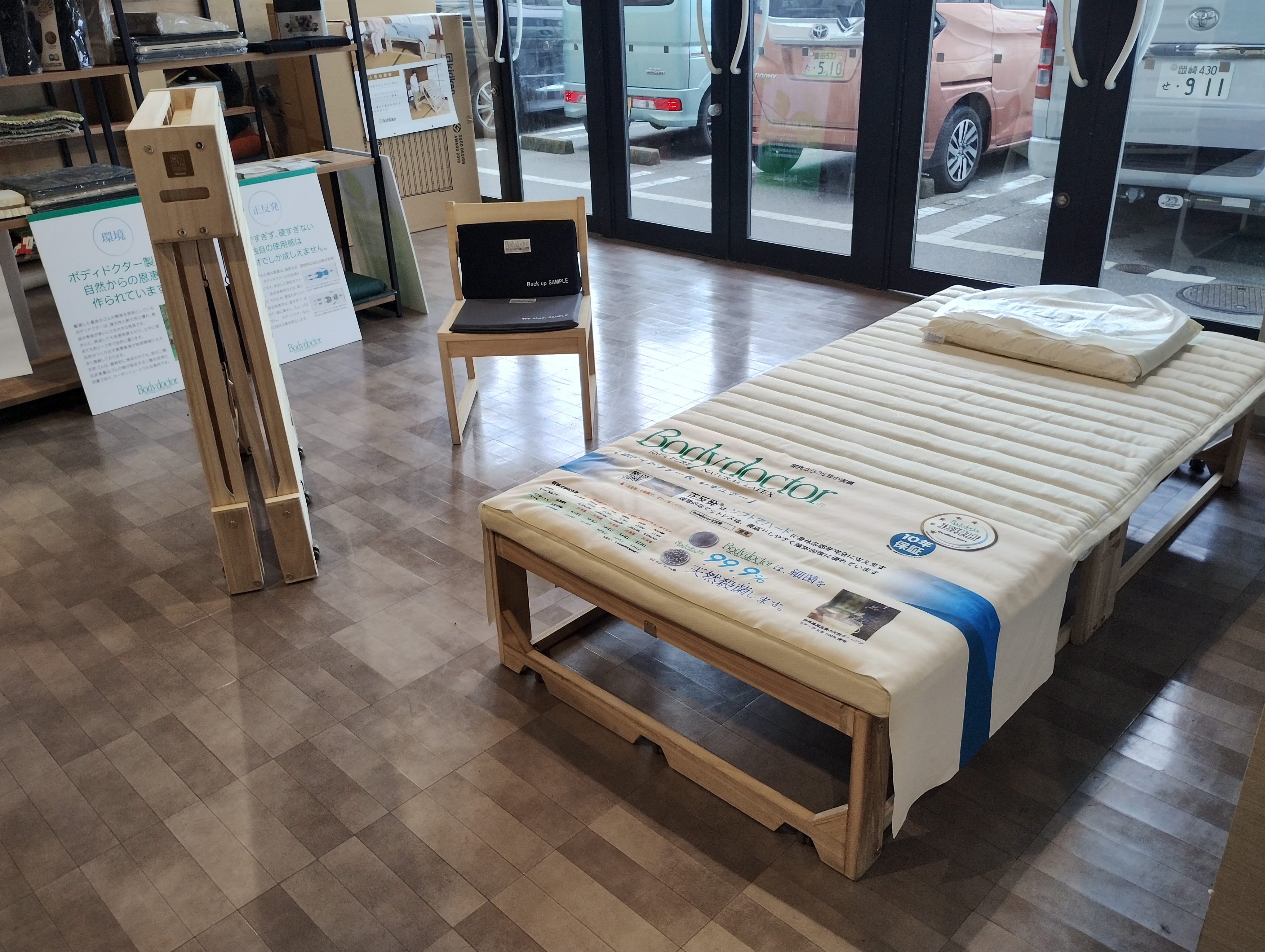 「実演販売会」では楽に折り畳み・移動が出来、防虫効果もある桐材を使用した折り畳みベッド「桐らくね」を中心に実際に体感することが可能です♪