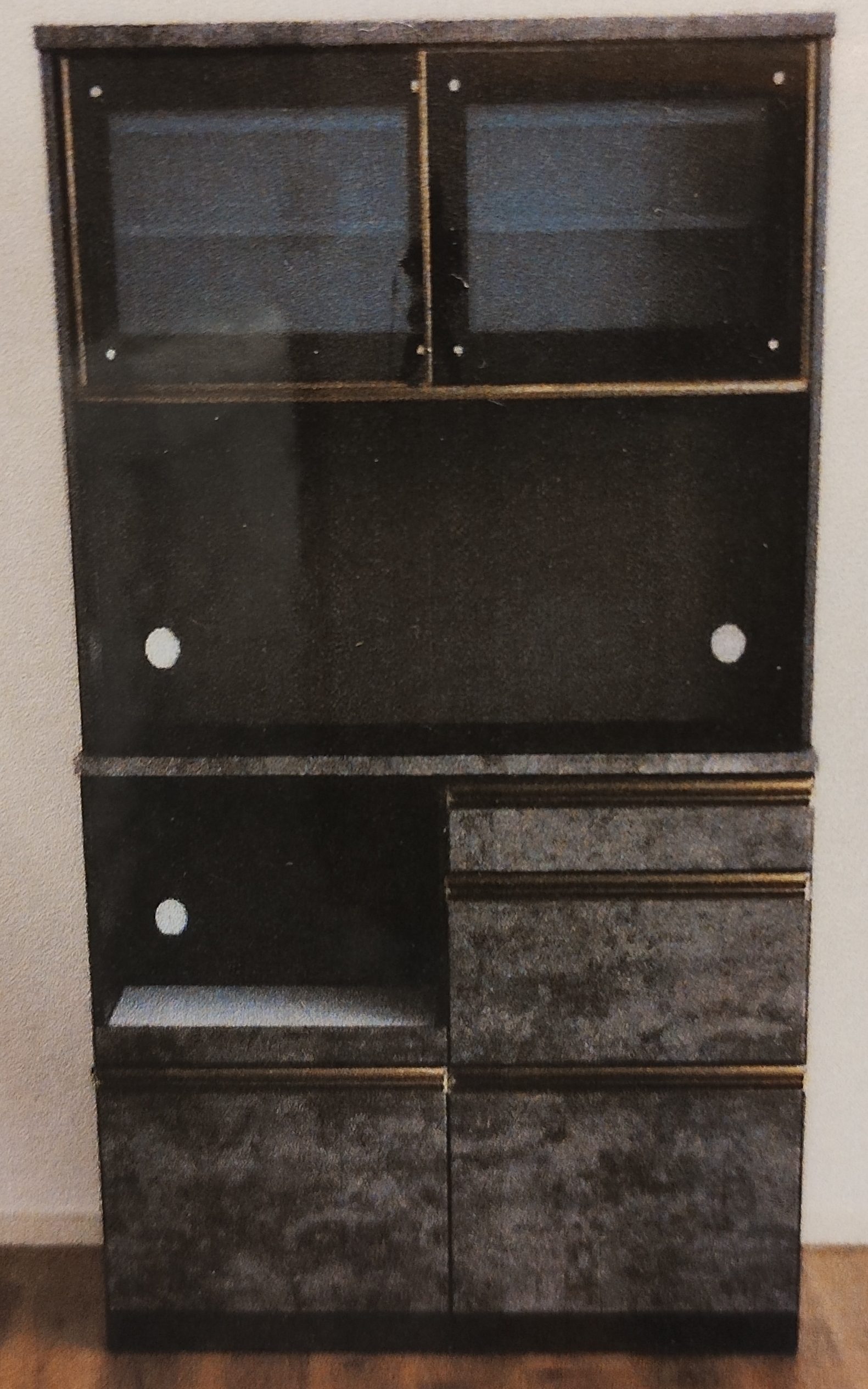 今人気のセラミック柄を施したモダンでおしゃれなレンジボードです。幅は89㎝とコンパクトながら、レンジや炊飯器、食器などもタップリと収納できます♪
