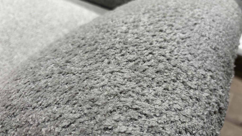 生地は立体的で高級感があり、肌触りもふわふわで気持ちいいです!背もたれはボリュームたっぷりでしっかり背中を支えてくれます。