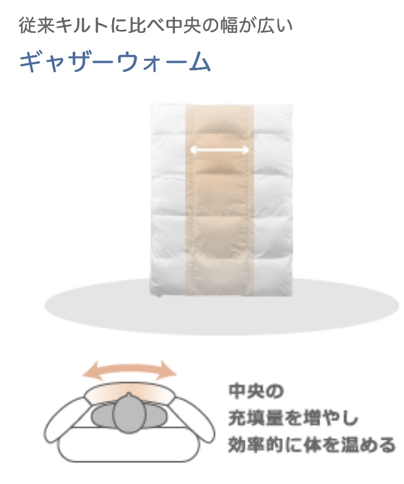 そうすると、体と羽毛布団の間に隙間ができてしまう場合があり冷えの原因となってしまいます。