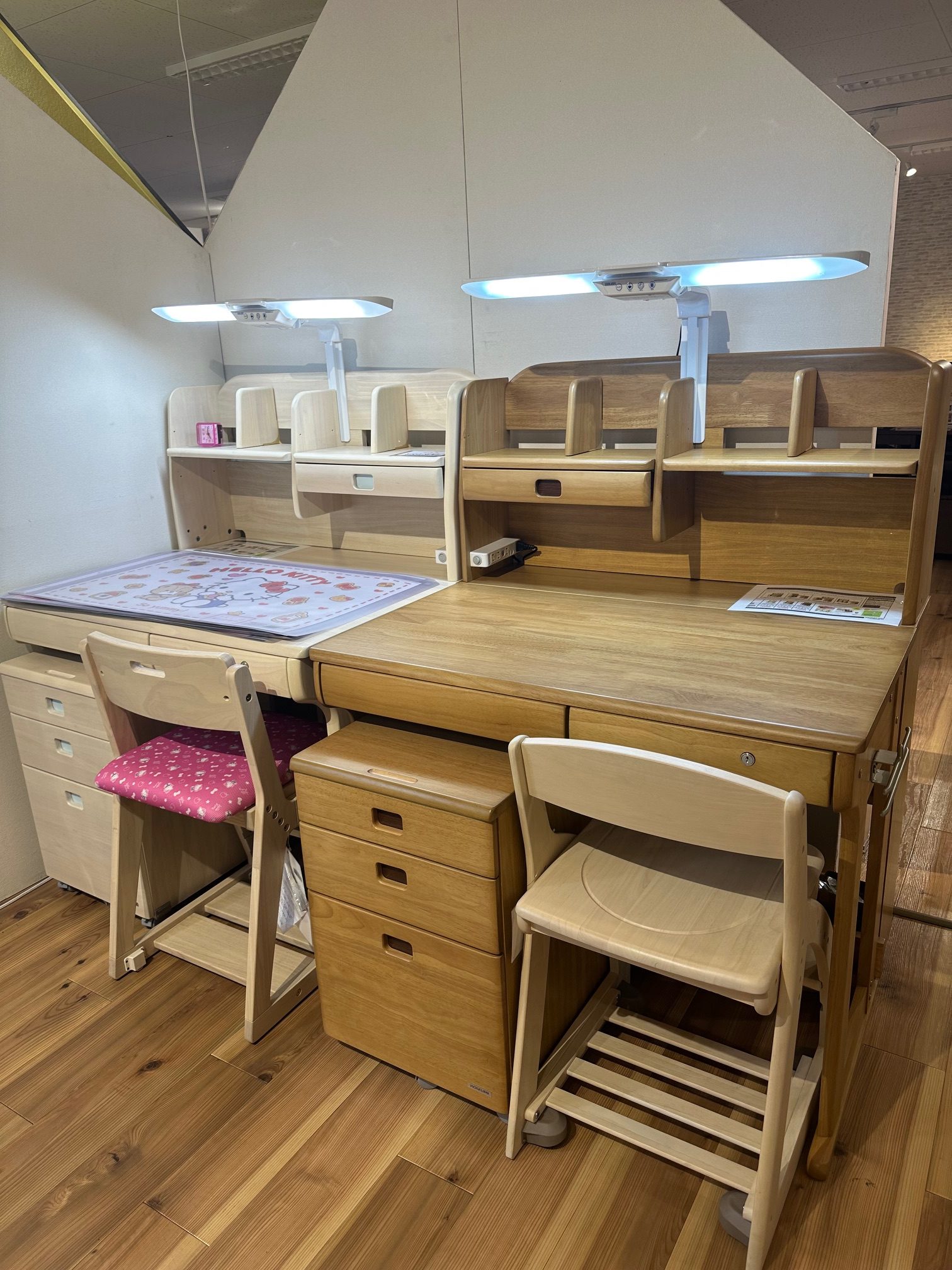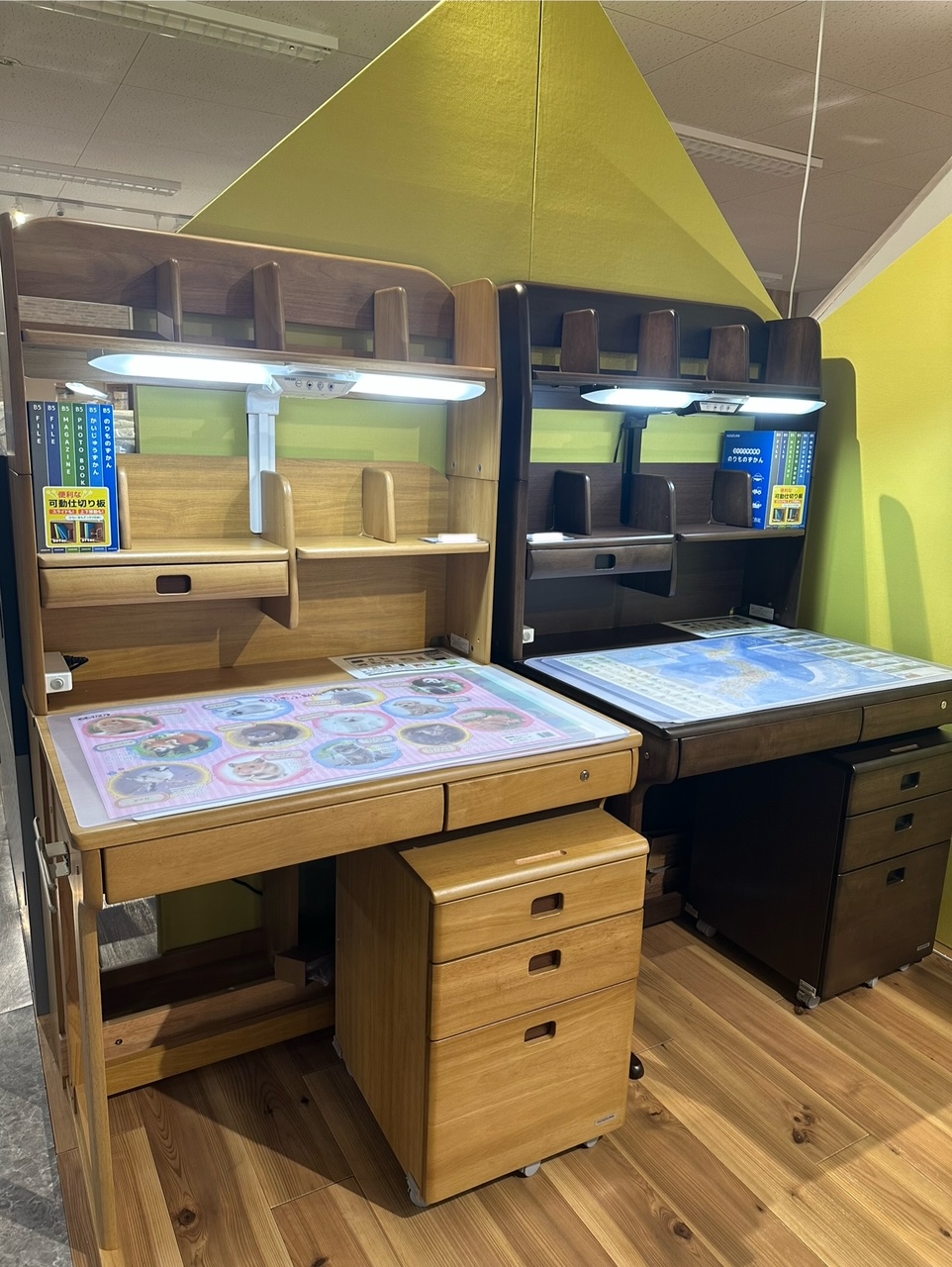 様々な学習デスクの展示がございます。