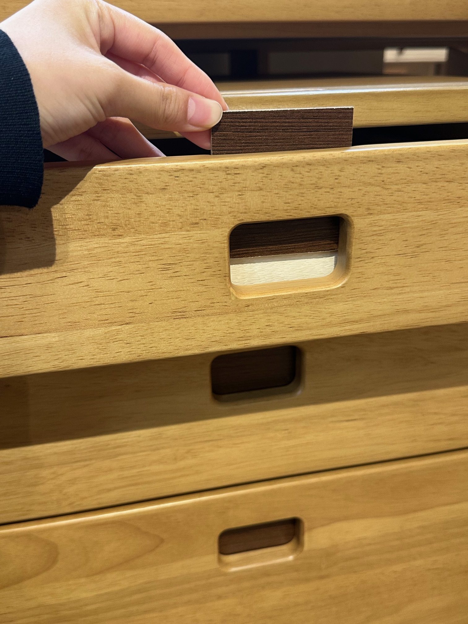 デスクワゴンの引き出し取っ手部分はリバーシブルになっているので