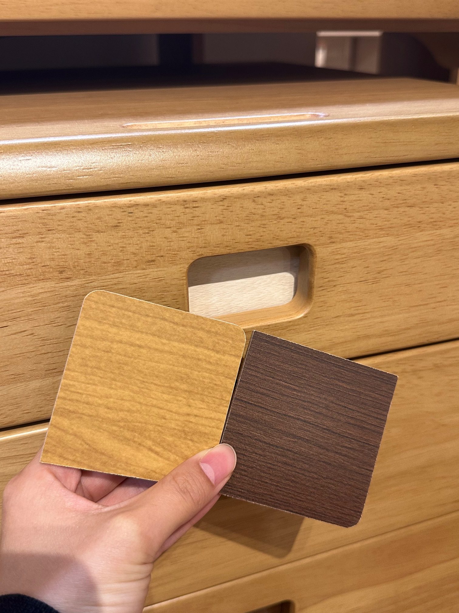 デスクワゴンの引き出し取っ手部分はリバーシブルになっているので