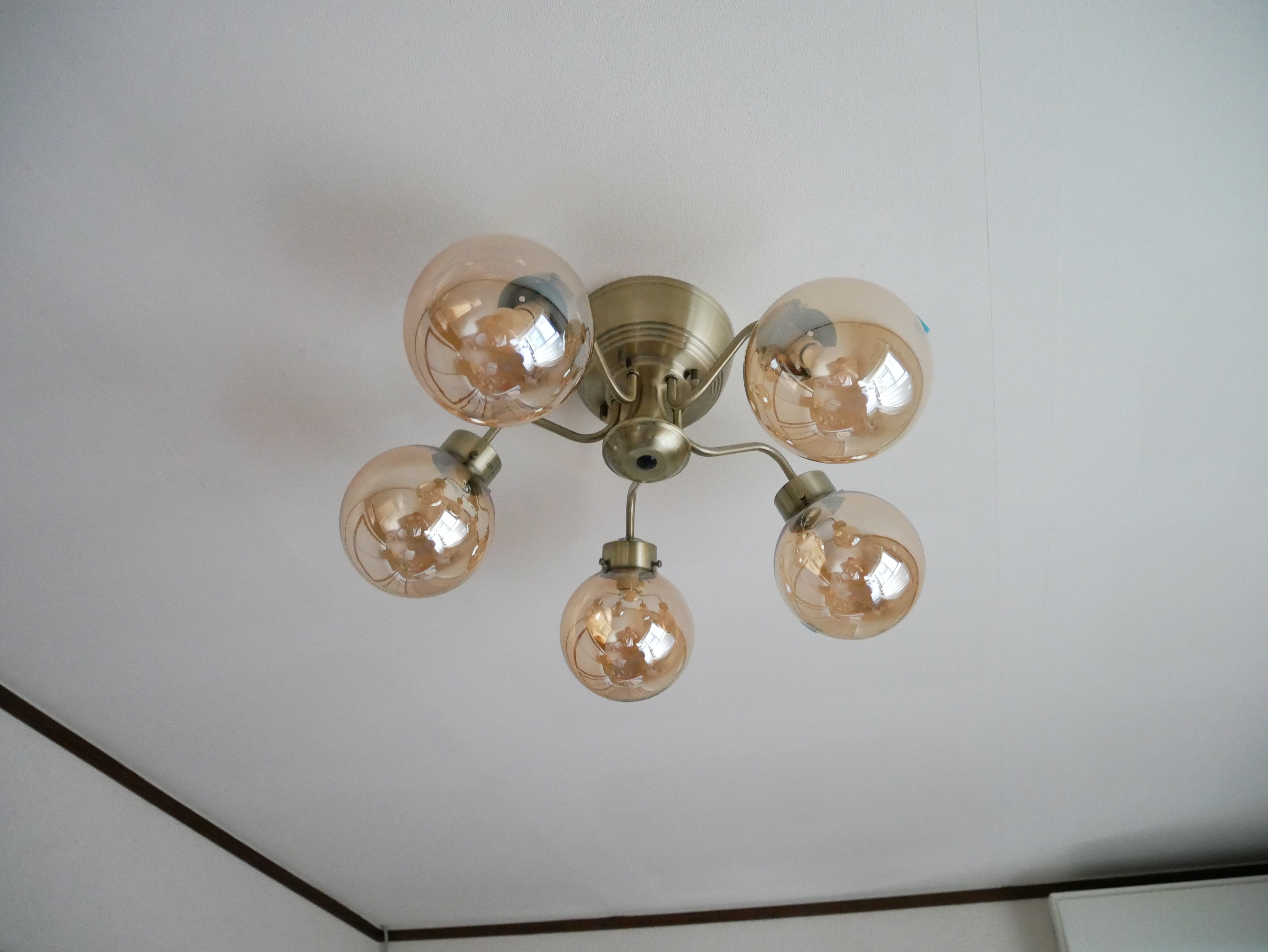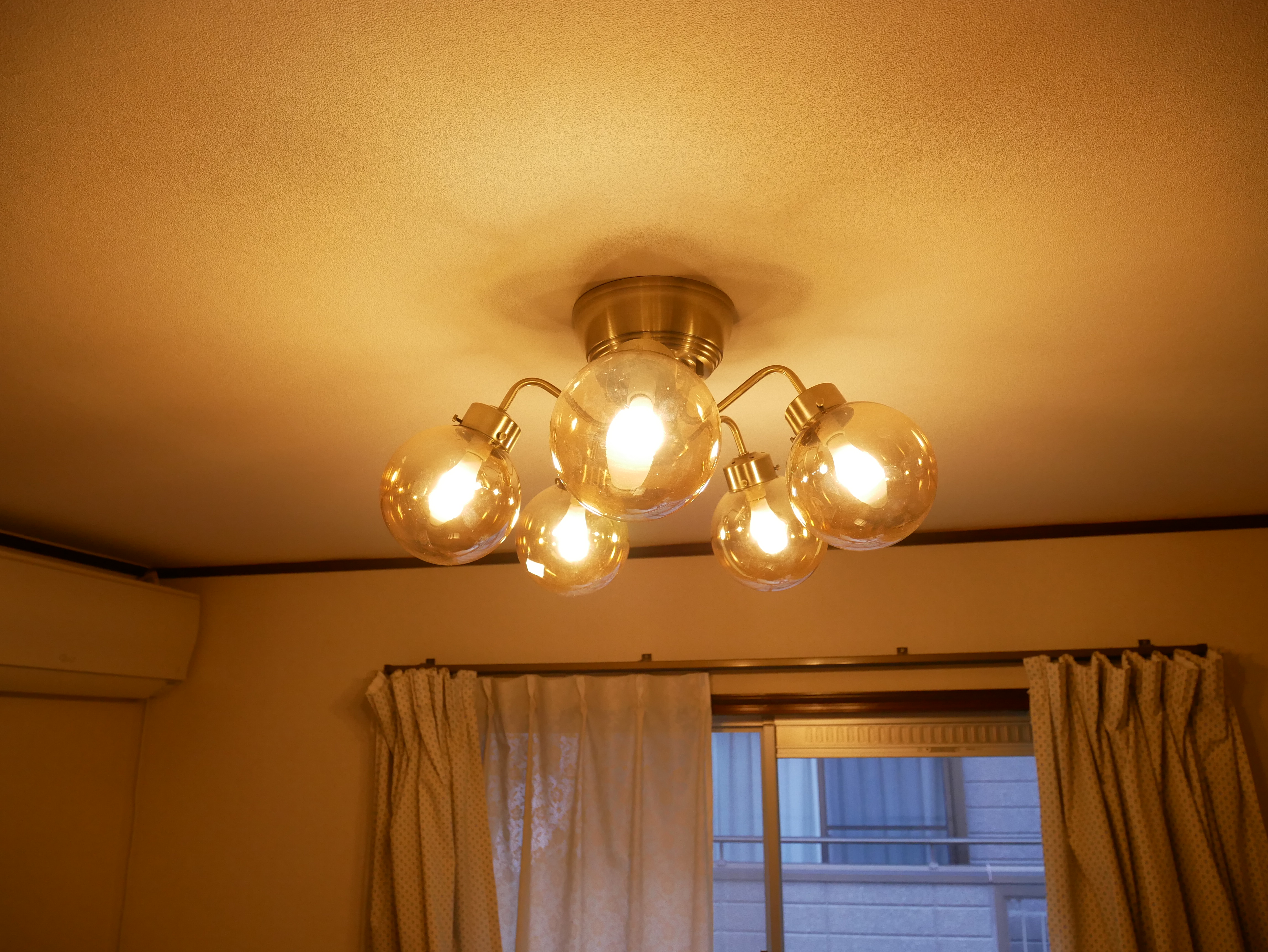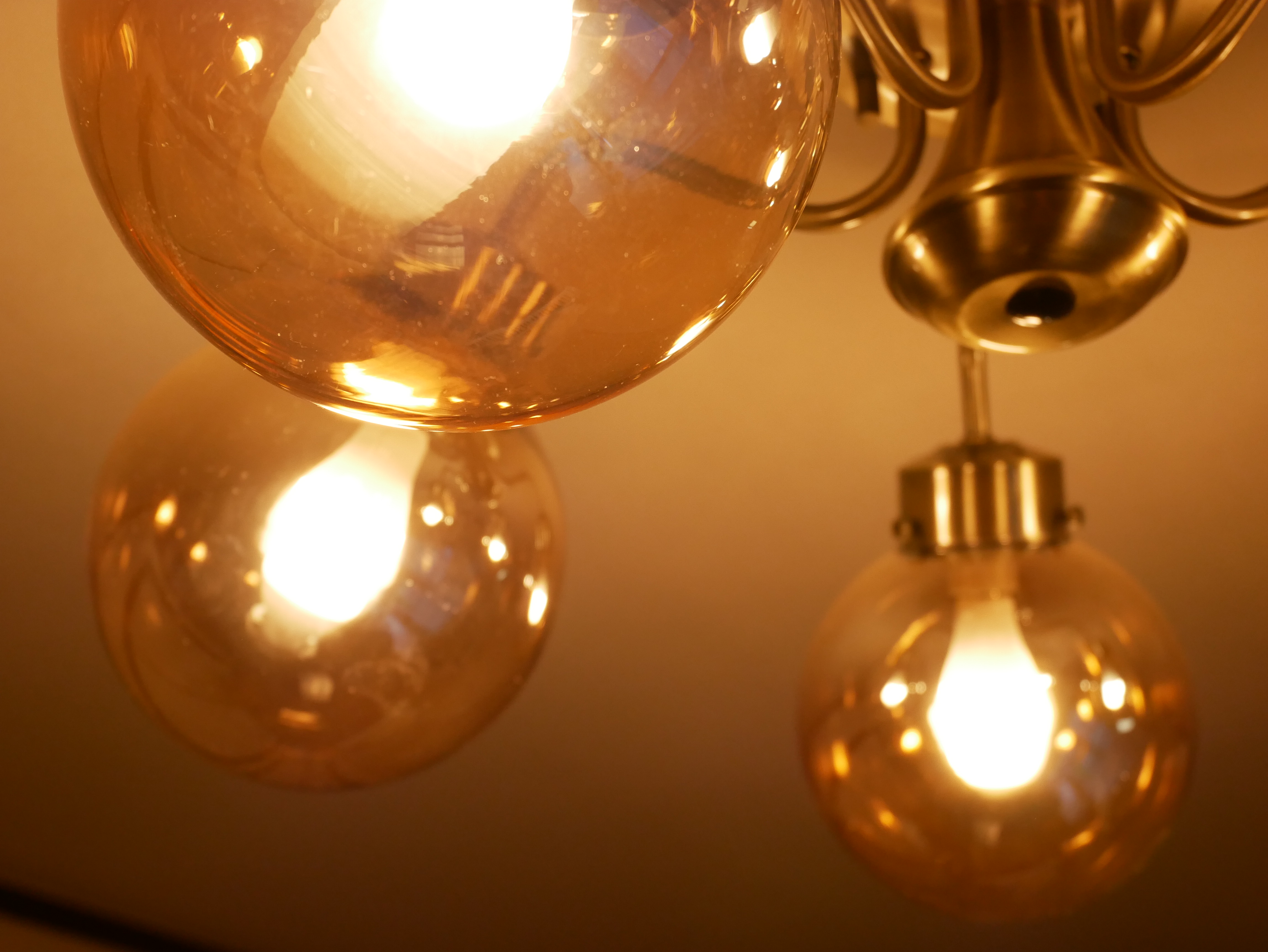 光源がよく合いますし、ゴールド(本体)・アンバー(ガラスセード)のカラーリングには電球色の