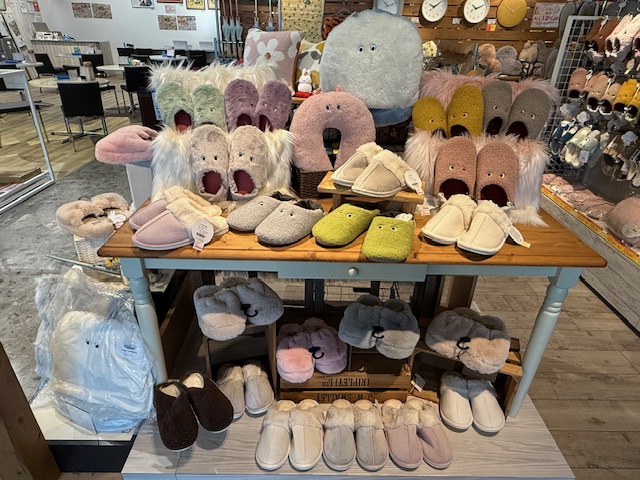 ぬいぐるみ、キーホルダー、トートバッグ、タオルハンカチ、メガネケース、アイピロー、ポーチなどさまざまなグッズが揃っています。