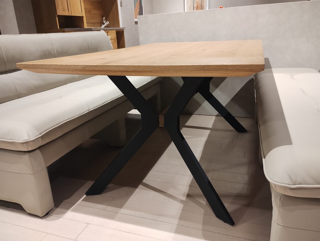 ダイニングテーブルは、当店で人気の異素材+X脚の最強コンビとなっています♪