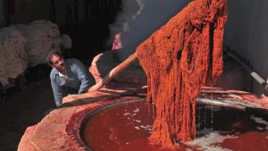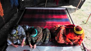 一つ一つの紋様、色にも意味があり、これまで織り手の女性が見て経験した風景、この先の暮らしの幸せを願う思い、自らの生まれに対する誇り、カシュガイ遊牧民の思いがたくさん込められた草木染の伝統工芸品です。