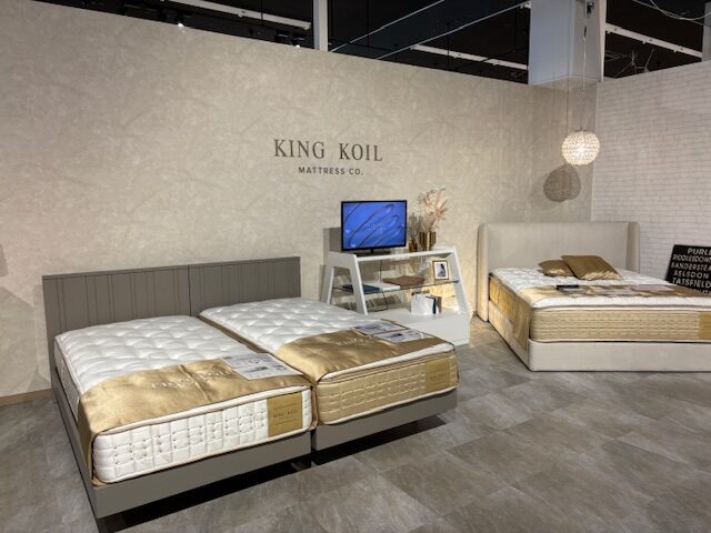 ブランドブースも配置が変わり見やすく、ベッドフロアでは新しくKING KOIL(キングコイル)ブースが出来ました!!