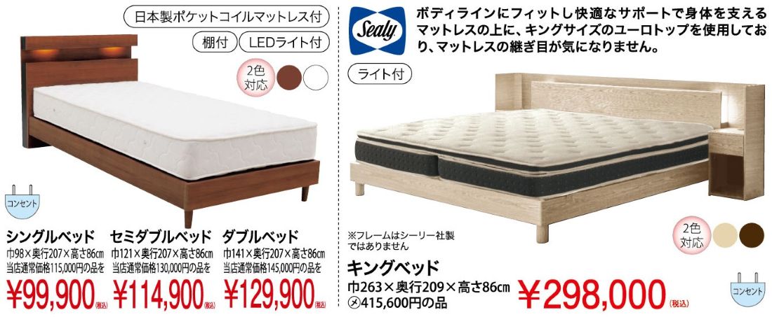 サータ・シモンズ・シーリー・日本ベッド・テンピュール・フランスベッド・アンネルベッド・パラマウントベッド・ルフベッテン・ドリームベッド・ワタリジャパン・馬場家具・フクラ・アヤノ製作所・プレーベル・飛騨産業・モーブル・パモウナ・モリタインテリア・カリモク・松田家具・イバタインテリア・マルイチセーリング・シラカワ・エコーネス・コイズミ・リラックスフォーム・ナツッジエディションズ・マスターウォール・ナツッジイタリア・ストレスレス・その他多数(※都合によりお取り扱いメーカーは変更されることがございます。予めご了承くださいませ。)