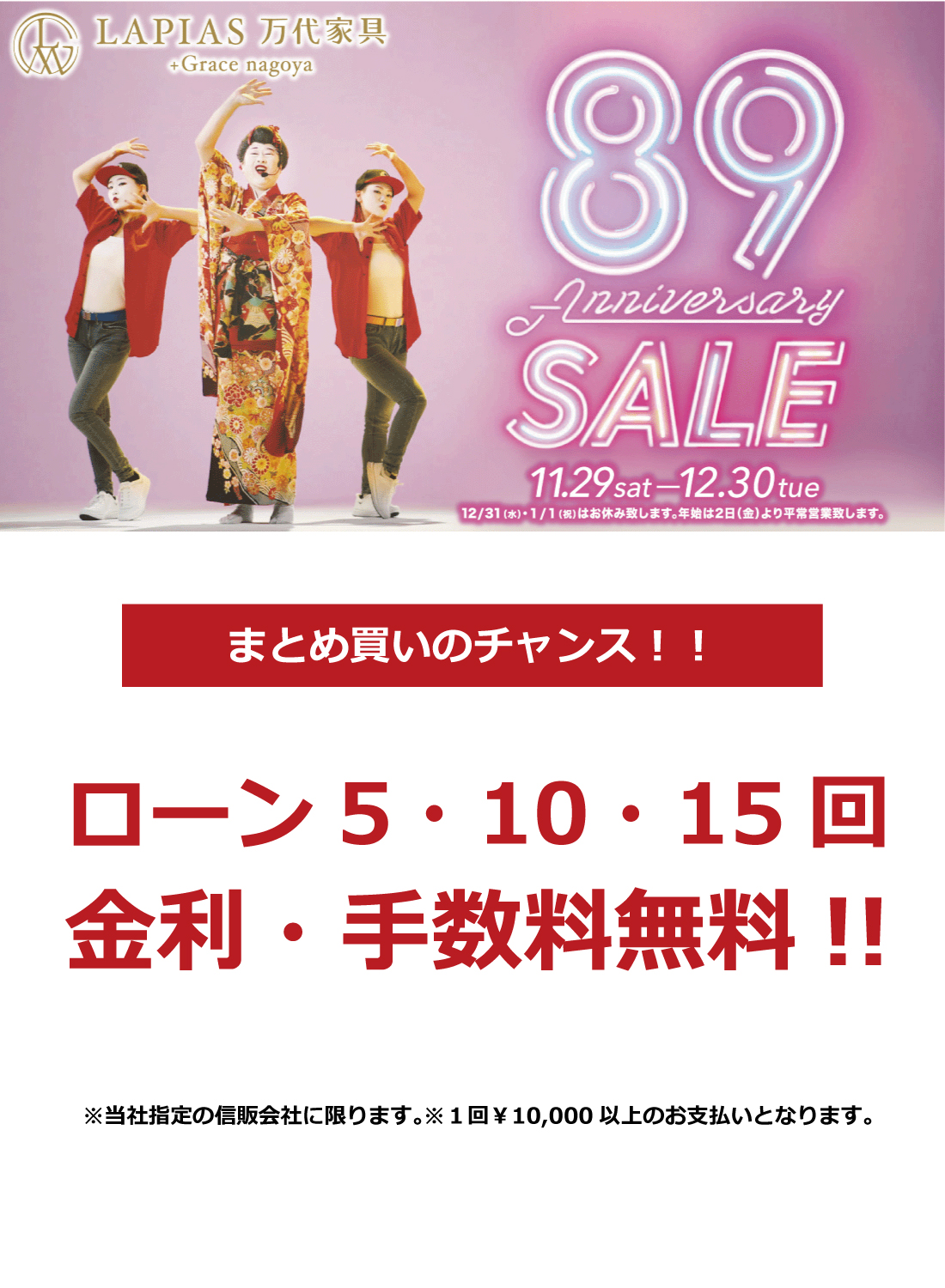 LAPIAS万代家具 +Grace nagoya 「89周年アニバーサリーSALE!!」
