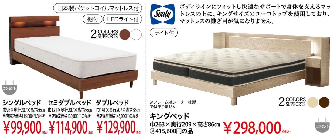 サータ・シモンズ・シーリー・日本ベッド・テンピュール・フランスベッド・アンネルベッド・パラマウントベッド・ルフベッテン・ドリームベッド・ワタリジャパン・馬場家具・フクラ・アヤノ製作所・プレーベル・飛騨産業・モーブル・パモウナ・モリタインテリア・カリモク・松田家具・イバタインテリア・マルイチセーリング・シラカワ・エコーネス・コイズミ・リラックスフォーム・ナツッジエディションズ・マスターウォール・ナツッジイタリア・ストレスレス・その他多数(※都合によりお取り扱いメーカーは変更されることがございます。予めご了承くださいませ。)