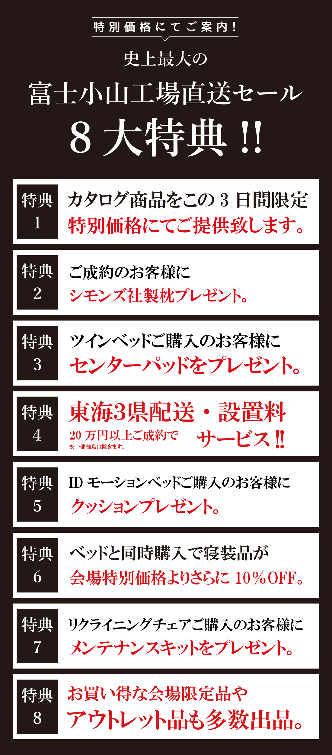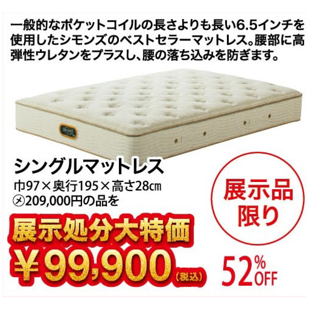 史上最大のシモンズ富士小山工場直送セールin豊田