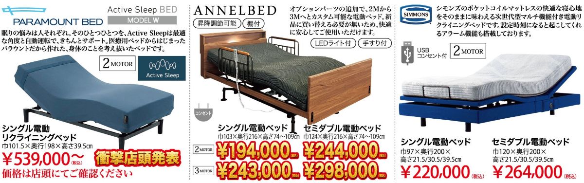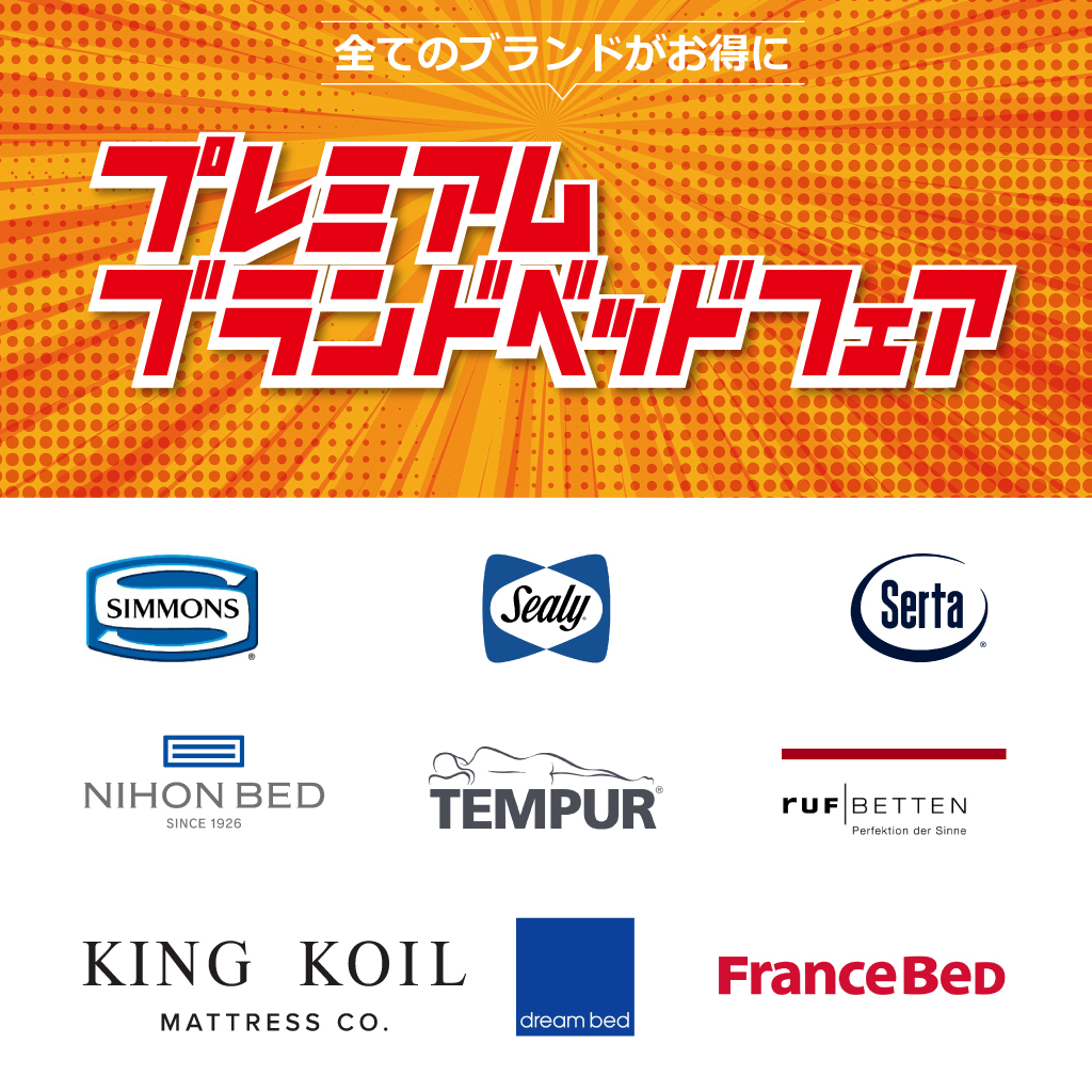 サータ・シモンズ・シーリー・日本ベッド・テンピュール・フランスベッド・アンネルベッド・パラマウントベッド・ルフベッテン・ドリームベッド・アスリープ(※都合によりお取り扱いメーカーは変更されることがございます。予めご了承くださいませ。)