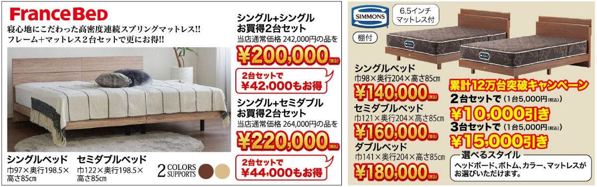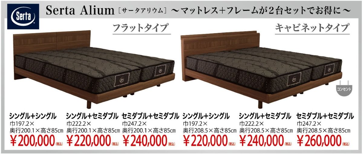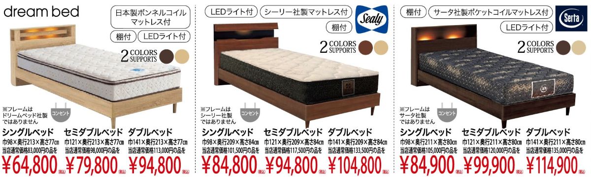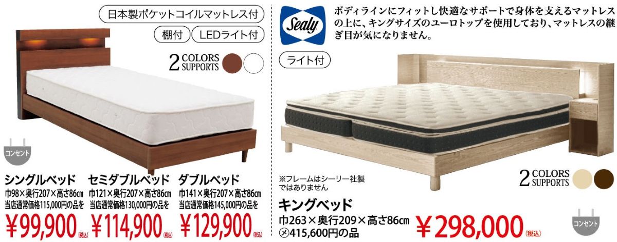 サータ・シモンズ・シーリー・日本ベッド・テンピュール・フランスベッド・アンネルベッド・パラマウントベッド・ルフベッテン・ドリームベッド・アスリープ(※都合によりお取り扱いメーカーは変更されることがございます。予めご了承くださいませ。)