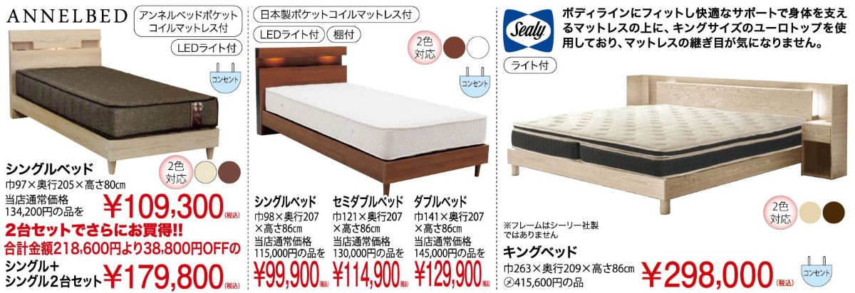 サータ・シモンズ・シーリー・日本ベッド・テンピュール・フランスベッド・アンネルベッド・パラマウントベッド・ルフベッテン・ドリームベッド・ワタリジャパン・馬場家具・フクラ・アヤノ製作所・プレーベル・飛騨産業・モーブル・パモウナ・モリタインテリア・カリモク・松田家具・イバタインテリア・マルイチセーリング・シラカワ・エコーネス・コイズミ・リラックスフォーム・ナツッジエディションズ・マスターウォール・ナツッジイタリア・ストレスレス・その他多数(※都合によりお取り扱いメーカーは変更されることがございます。予めご了承くださいませ。)